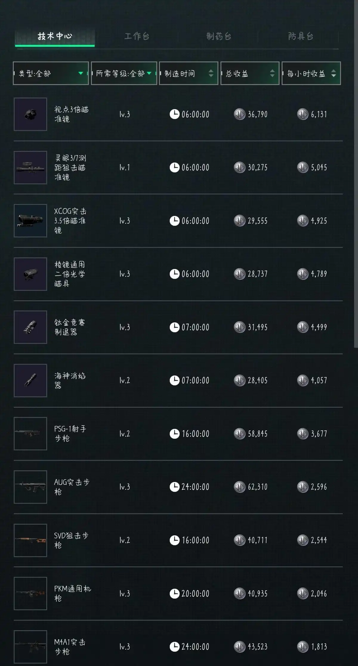 今日特勤处解锁后能获得以下极品战利品: