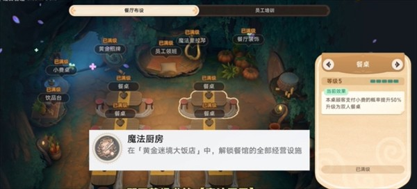 随着游戏进度推进,管理处会开放更多经营设施,需要消耗妖精金币购买。