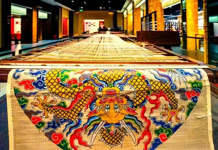南京云锦在元、明、清时期,多作为皇家御用贡品,用于制作宫廷服饰(如龙袍、冕服)、赏赐重臣,以及祭祀礼器的装饰。