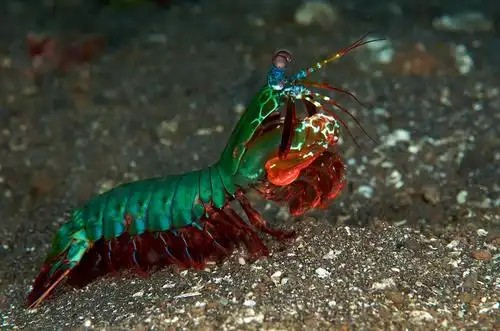 雀尾螳螂虾是一种生活在海底洞穴中的虾类,它们全年都能繁殖,尤其在5至7月最为活跃。