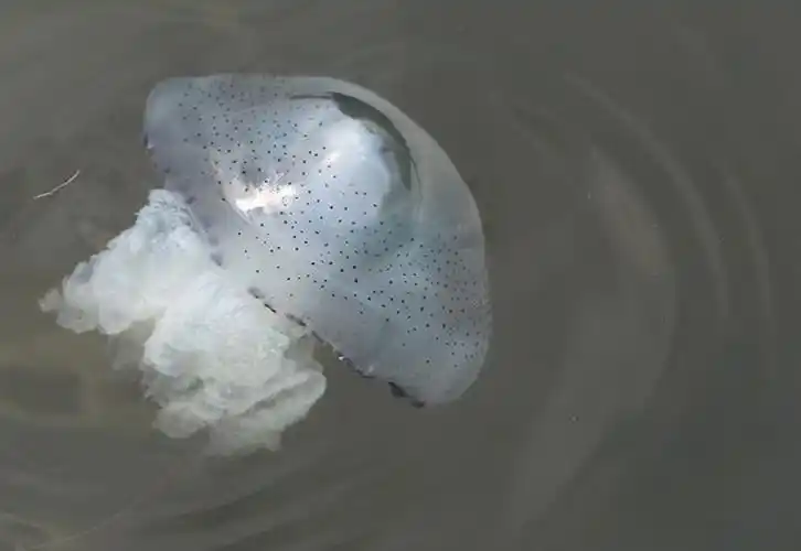 一旦遇到强烈阳光、大风天气或高温,海蜇就会迅速下潜,躲进深水区避暑。