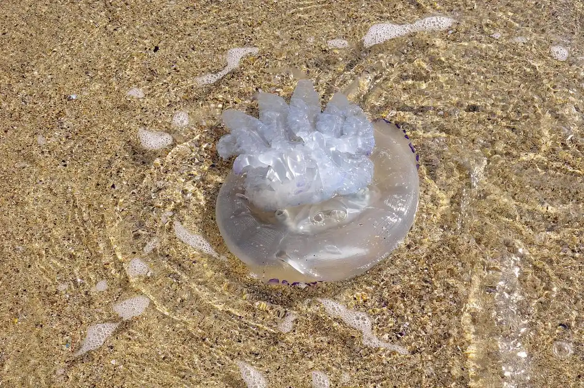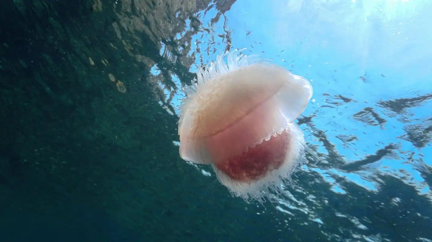 海蜇的触手上长满了叫做刺细胞的小机关,一旦被碰到,这些刺细胞就会像弹簧一样“弹射”出带毒的刺丝,迅速扎进目标体内。