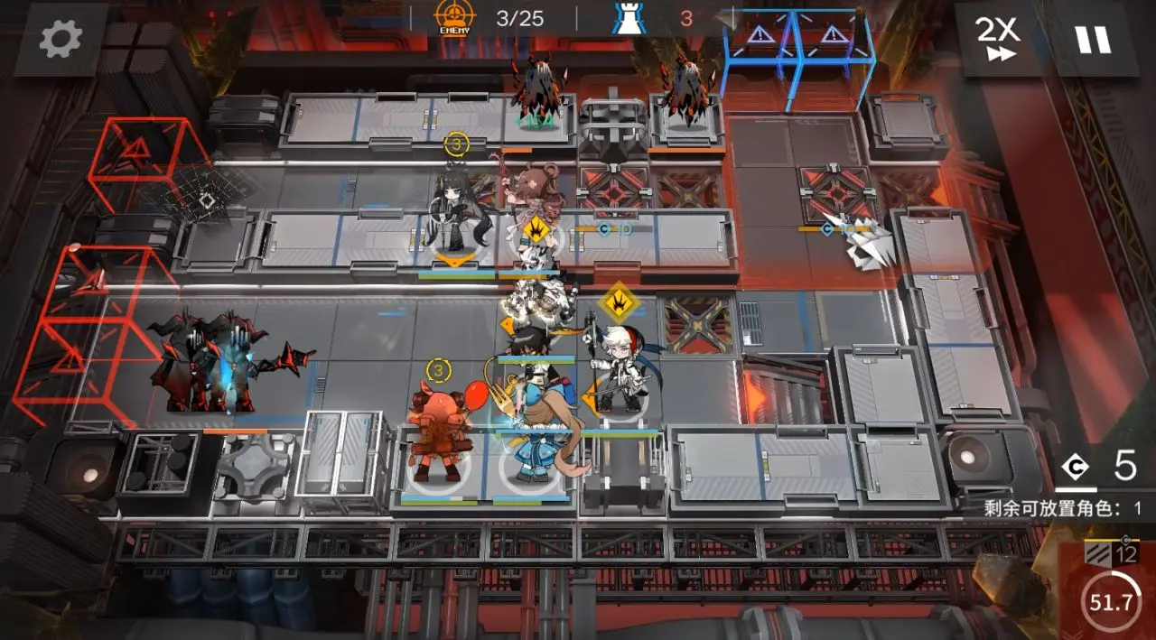 先锋:先放德克,再放2位投锋型先锋(极境放在他们附近支援)。