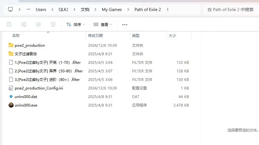 3、在里面找到POE2的文件夹,如果里面的内容已经出现了,那就说明安装成功啦!