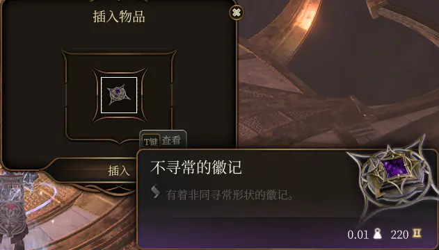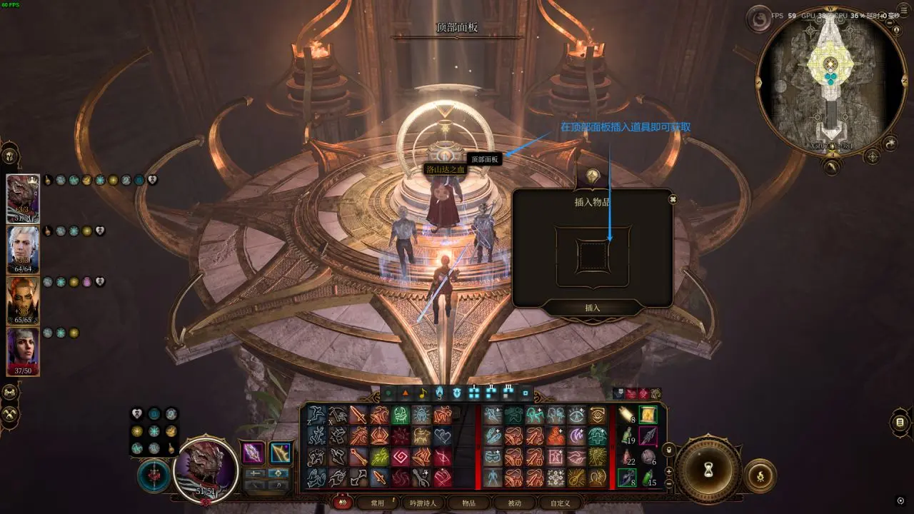 2、此时,打开顶部面板,将徽记插入面板,然后就可以顺利获得洛山达之血了。