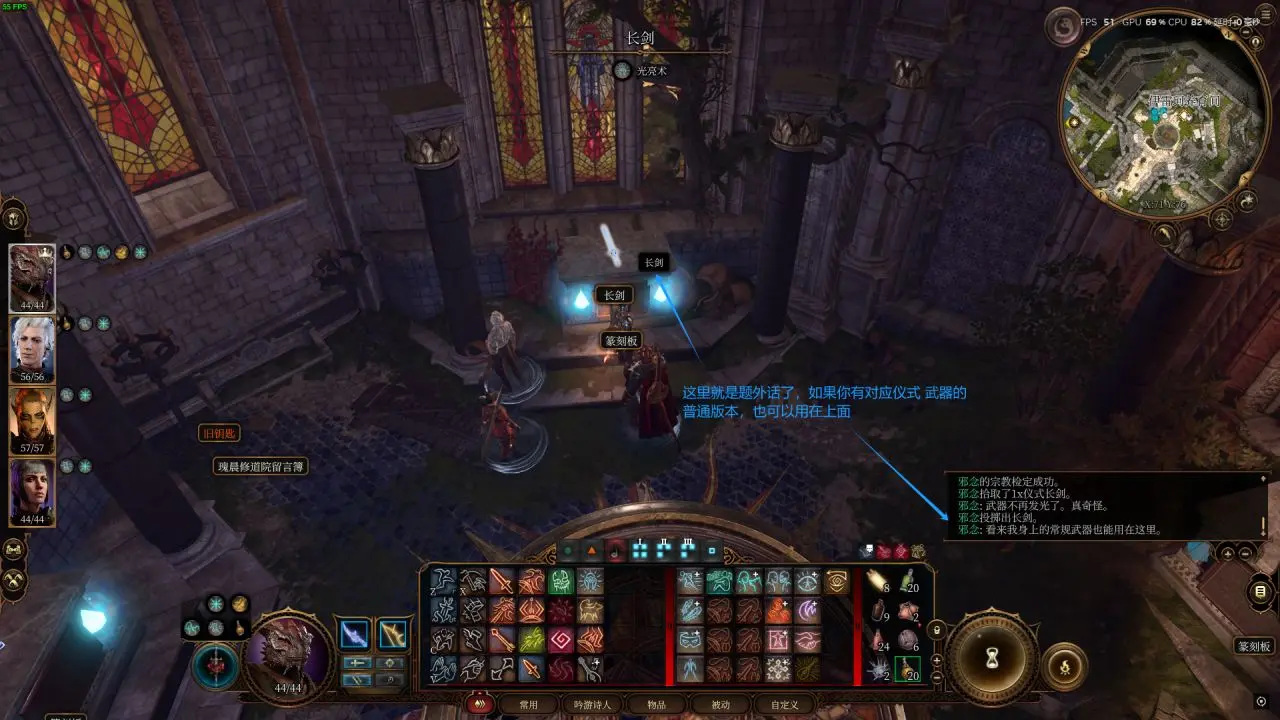2、找到这三把仪式武器后,回到大厅,将它们按正确的方式摆放在对应的祭坛上。