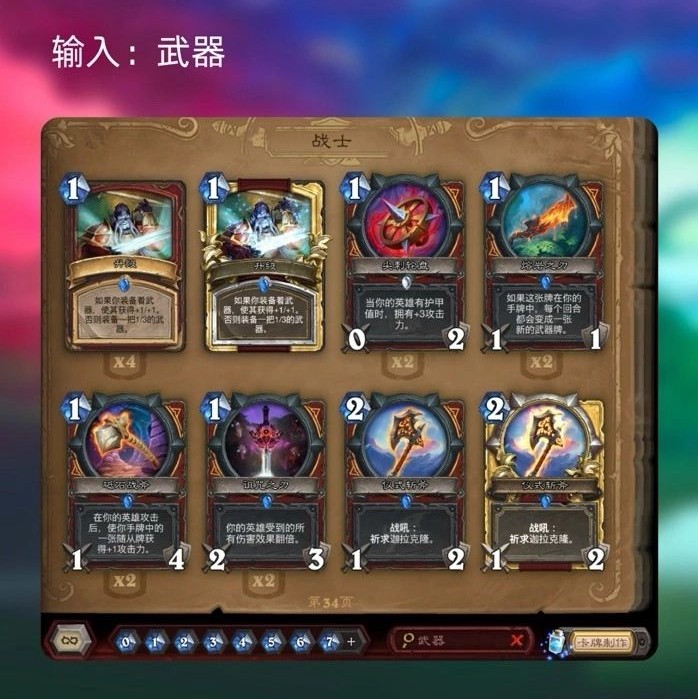 3、武器 ➜ 搜索所有武器牌,包括职业武器和中立武器。