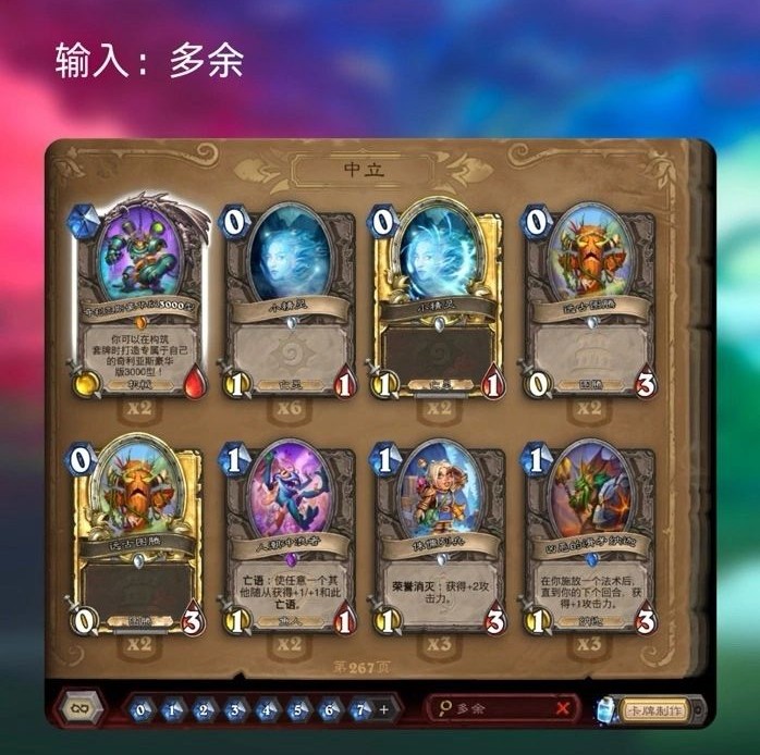 4、战吼 / 亡语 ➜ 分别查找具有战吼或亡语特效的卡牌,适用于构筑特定流派的卡组。