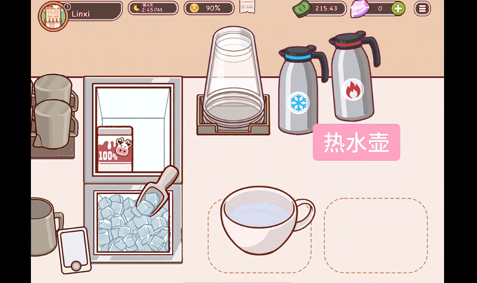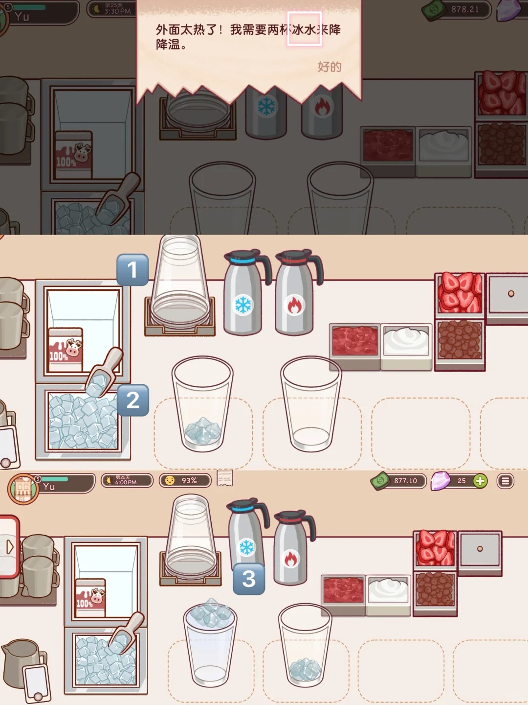 随着店铺等级提升,你可以解锁更多高效的水源设备,比如更快的制冰机,让制作冰水变得更方便!
