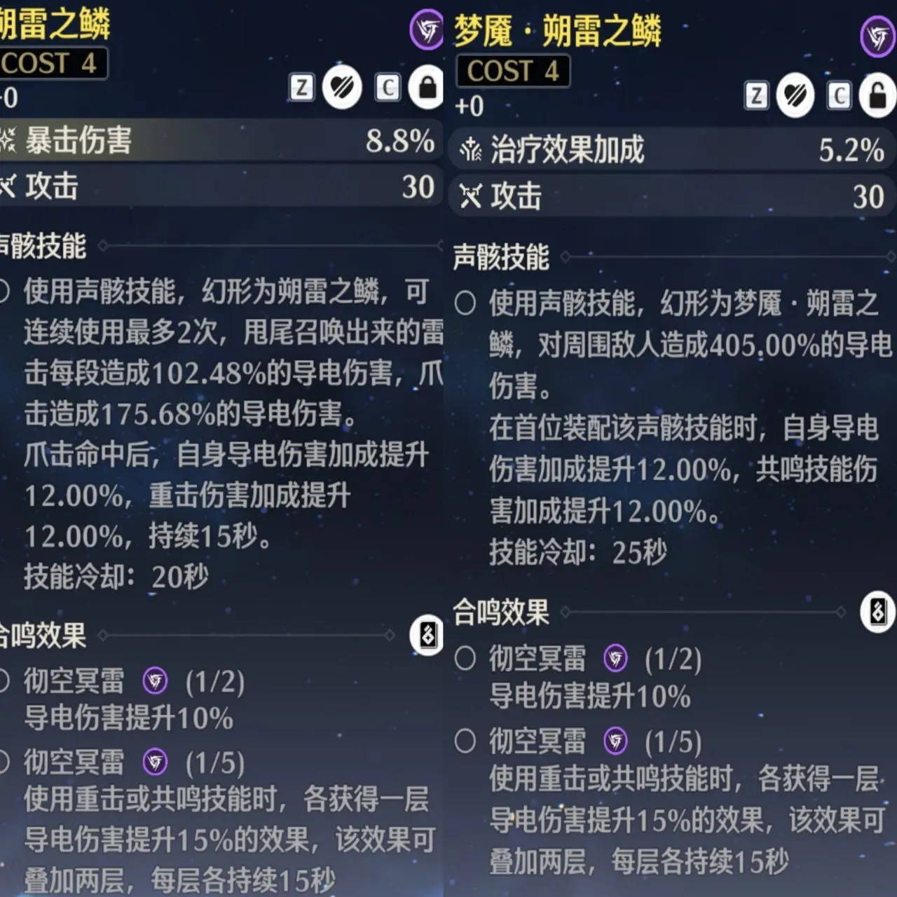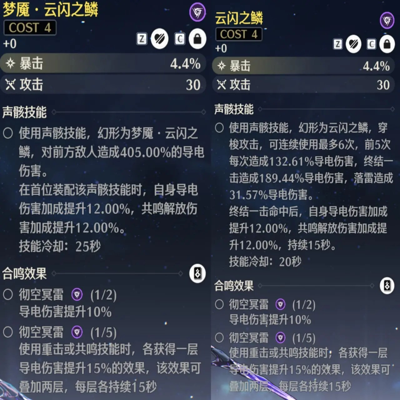 原版提供重击伤害加成,但导电队的核心玩法更依赖云闪之鳞(共鸣解放伤害)。