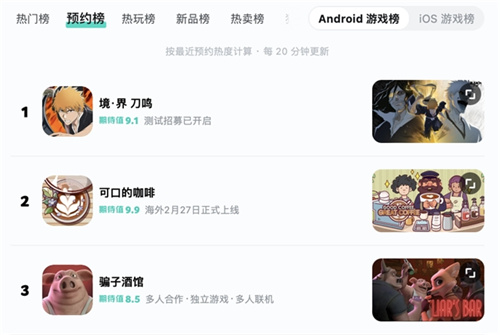 《境·界 刀鸣》始解测试招募已经开启!作为日本三大漫之一《BLEACH》改编,这款游戏从发布就受到了众多粉丝的关注。始解测试招募的第一天,就有不少《BLEACH》粉丝,动作游戏玩家蜂拥而来。更有粉丝留言感慨,期待已久的游戏复活。更有游戏小编5G冲浪,速报自己打赢了复活赛。如今!真的复活赛归来了,tap预约榜单登顶TOP1,游戏热度不断攀升。