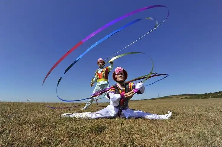 2、每逢节日庆典,朝鲜族民众都会跳象帽舞,表达对劳动和生活的热爱。