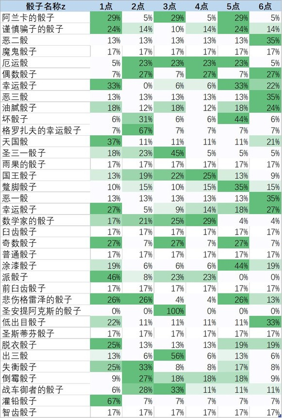 附上各骰子掷点概率: