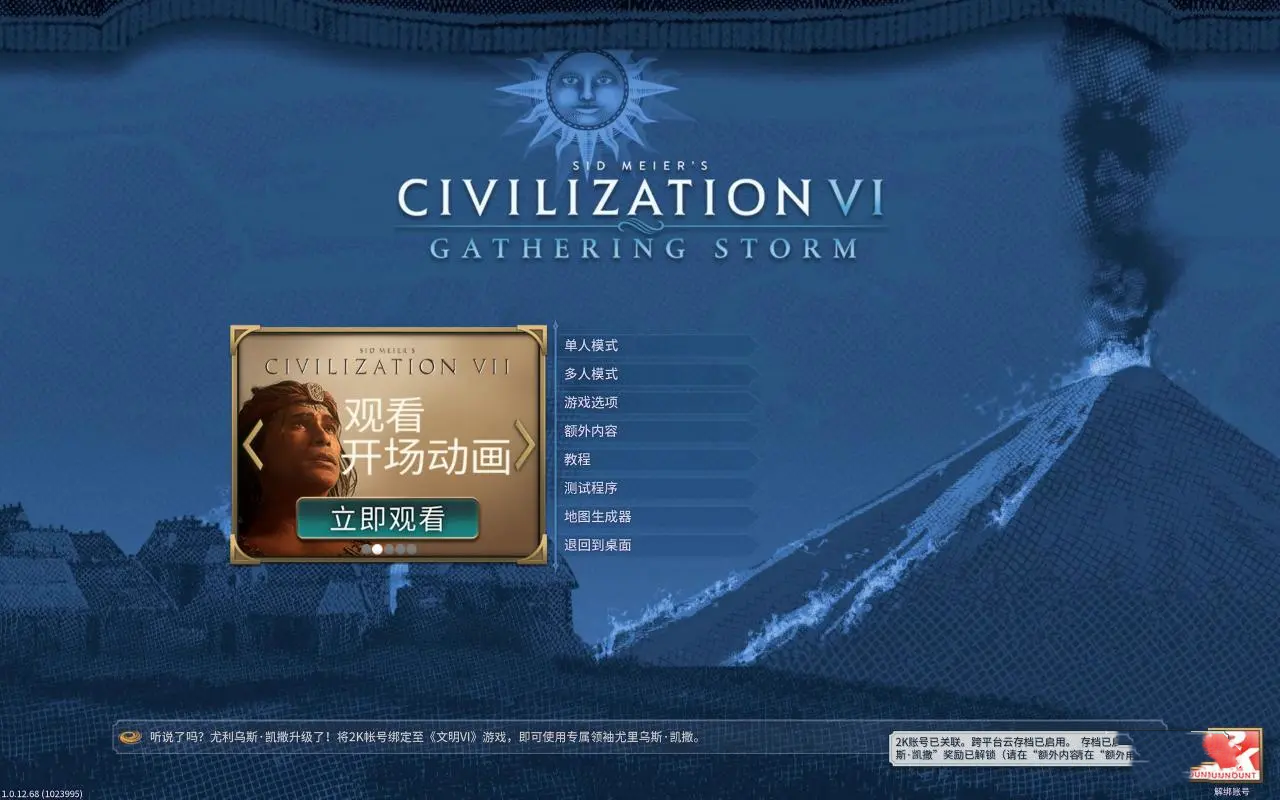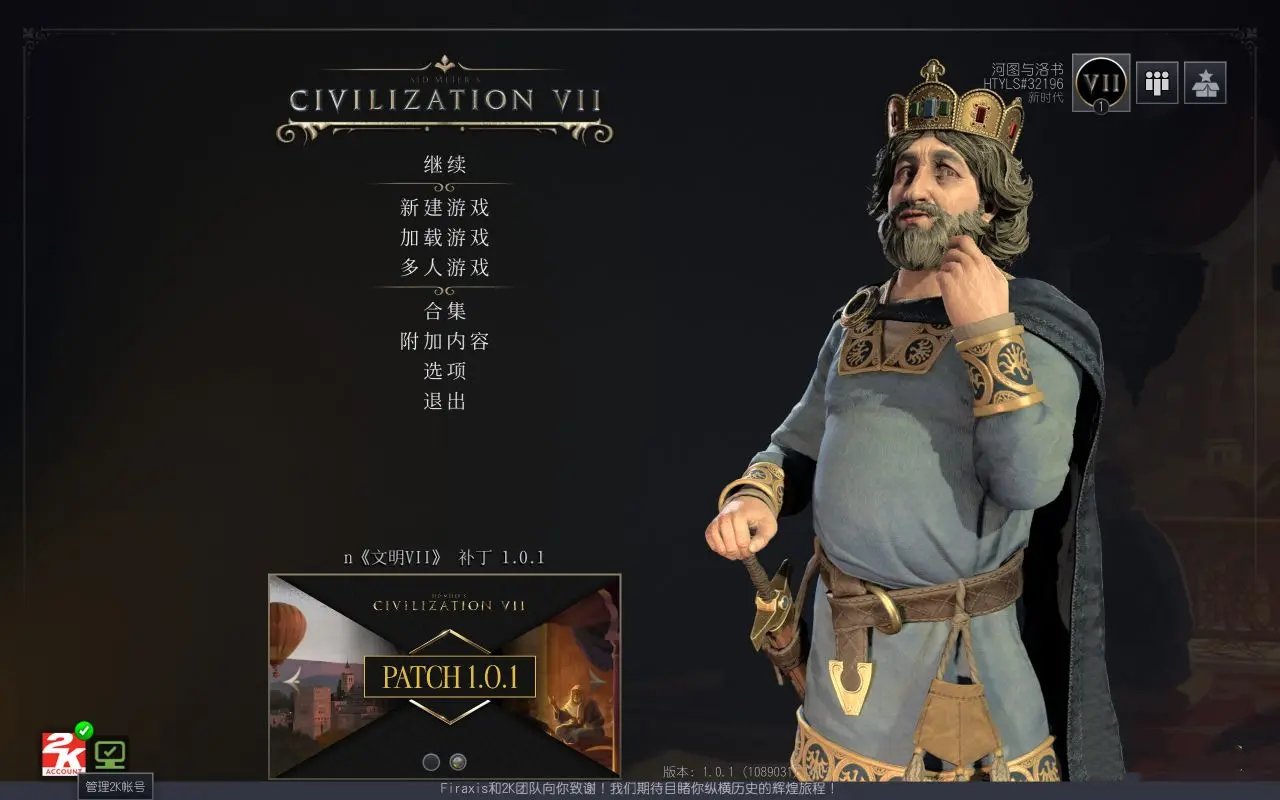 2、在完成君主形象解锁的基础上,登录文明6,同样在右下角绑定2K账号。