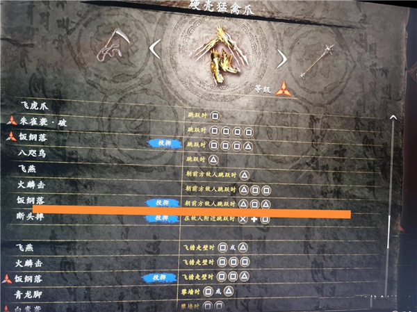 二、硬壳猛禽爪 - 飞燕饭纲落按键:先按风驱,再按△(或Y)使出飞燕,敌人被击中后,再按口、△(或X、Y)接连攻击。