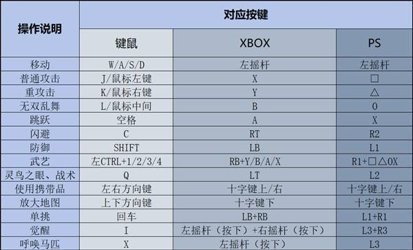 >这边是各平台游玩按键操作,比如Xbox/PS和键鼠操作。