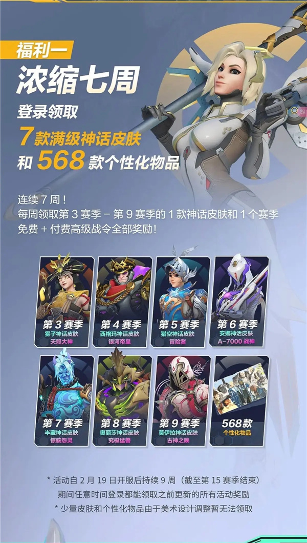 一、福利1:连续登录领取7款神话皮肤与568款奖励