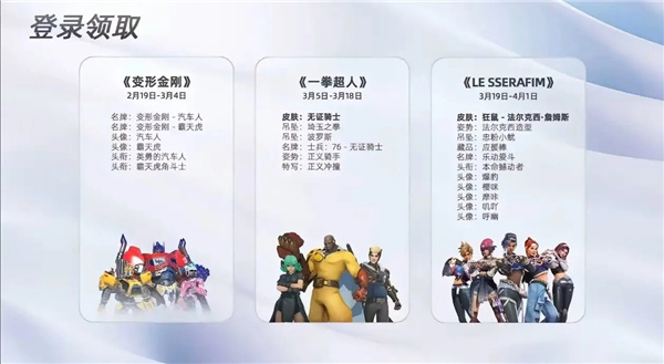注意:错过登录的玩家可以在活动期间随时补领此前更新的奖励。