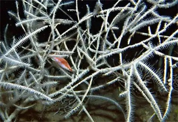 6、黑角珊瑚不仅耐受深海高压、低温、盐度变化等恶劣环境,还能在暗流汹涌的海底扎根生存,展现了其非凡的生命力和适应力。