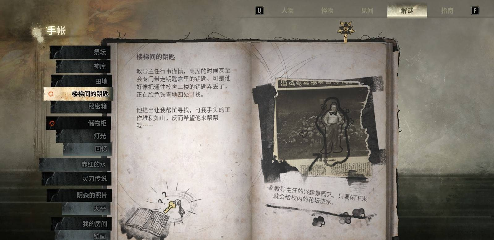中学部分包含三大独立谜题,需要按顺序推进:先取到二楼钥匙,再解秘密箱,最后用纸条线索解开储物柜密码。
