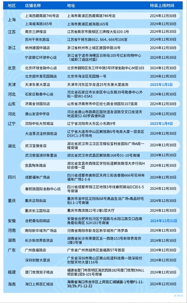 主题店开启:12月30日起,全国28家罗森主题店将陆续开放特装。