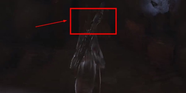 4、将平台上的两个敌人解决掉后,从标记位置跳下护栏,进入洞窟底部区域。