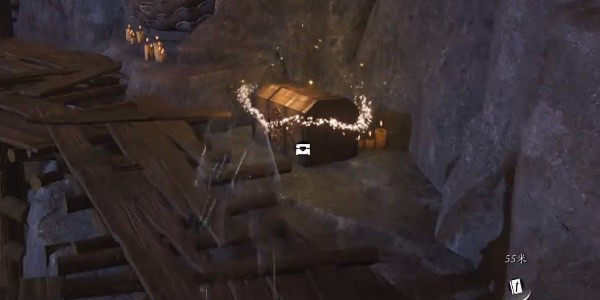 10、按照任务指引深入洞窟深处,推开木门后,你会在木板上找到第二个宝箱。