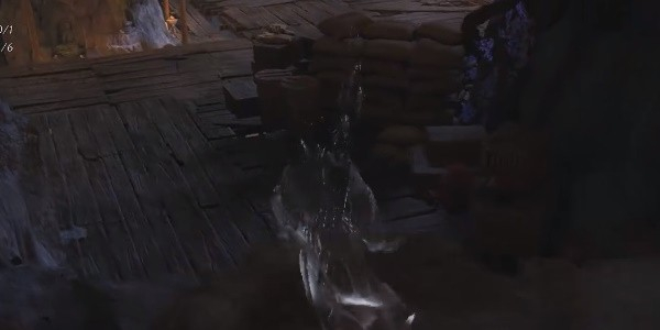 2、进入洞窟后,抵达一个放有沙包的平台位置。