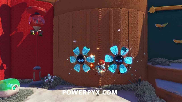 击打仙人掌找到弹射器,到达远处的小岛上,通过喷水使花坛上的绿叶开花,最后获得金色礼物。