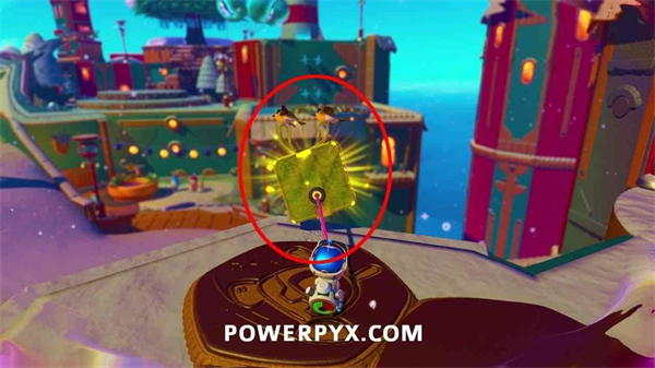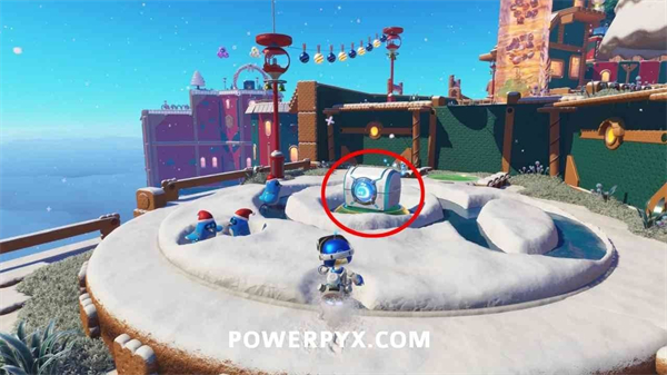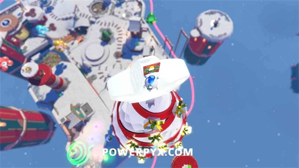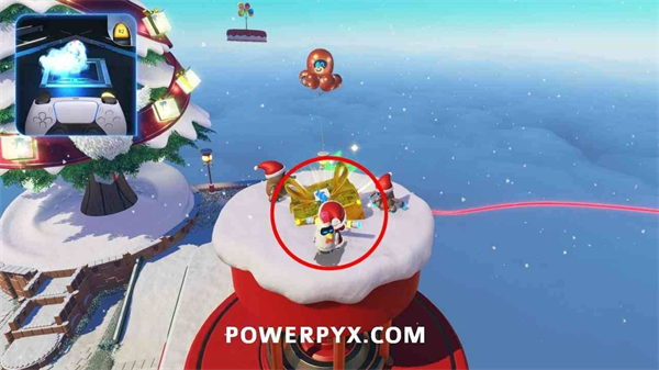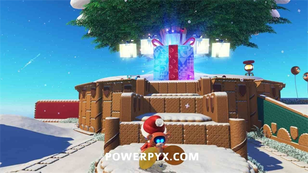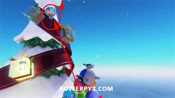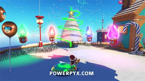 从金色礼物旁的马卡龙平台上,使用气球能力飞到圣诞树顶端,解锁此奖杯。