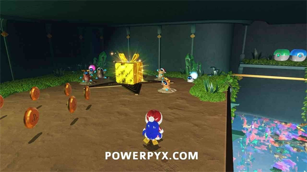 跳入水井并游到水下洞穴,打开蓝色宝箱获得“企鹅”能力,打破洞穴墙壁后上浮,进入下一个区域即可获得礼物。