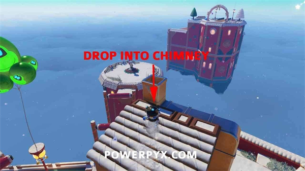 使用气球能力继续飞向金色礼物,直到到达顶端并解锁奖杯。