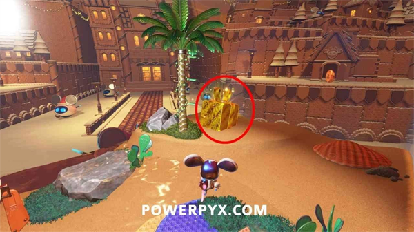 在关卡的起点,找到前方左侧的金色礼盒。