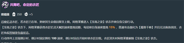 这项技能可以让阿格莱雅在召唤衣匠时立即发挥作用,提升战斗效率。