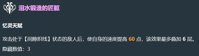 阿格莱雅攻击敌人时,会使目标进入“间隙织线”状态,这一效果仅对最近攻击的目标生效。