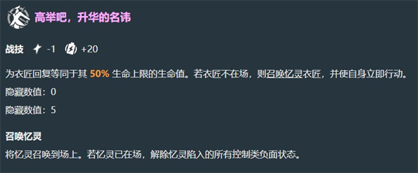 阿格莱雅使用此技能为她的忆灵“衣匠”回复25%-50%的生命值。