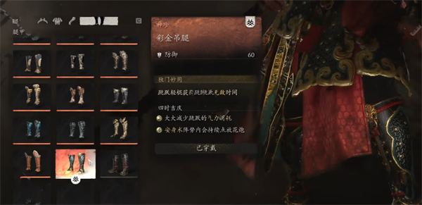 4、彩金吊腿-神珍:防御60,跳跃轻棍获得较短的无敌时间。