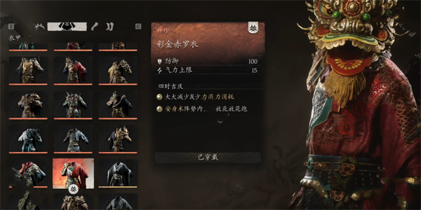 2、彩金赤罗衣-神珍:防御48,气力上限15。