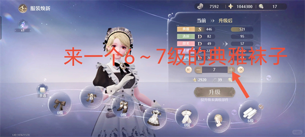 3、外套和袜子:选择典雅属性的服饰,并升级到6-7级,优先挑选已有高典雅值的部件。
