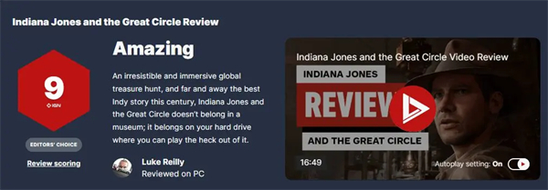 IGN称其为“令人难以抗拒、身临其境的寻宝冒险游戏”,是本世纪最精彩的印第安纳·琼斯故事。