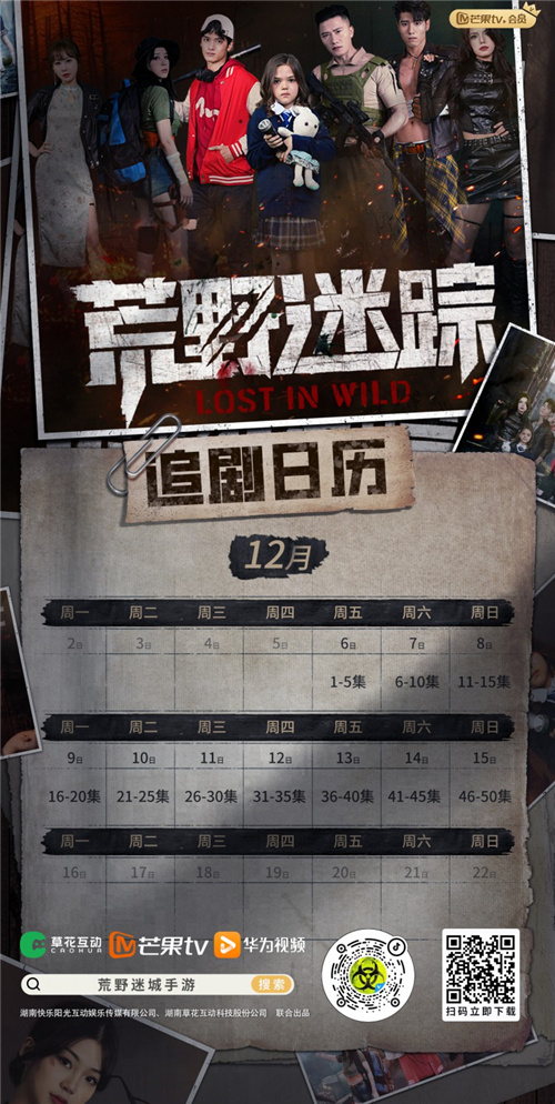 12月6日,完整剧集将在芒果TV、华为视频、《荒野迷城》手游抖音/快手/微信视频/微博/哔哩哔哩官号多平台同步上线,让我们一起揭开这座迷城荒岛的神秘面纱,探索未知,揭秘荒野深处的秘密!