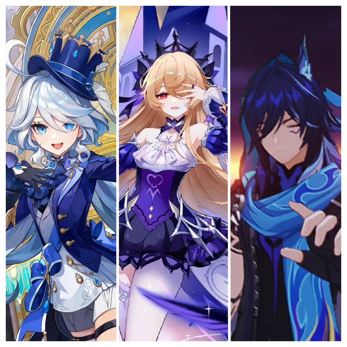 芙宁娜负责后台挂水,与皇女的雷元素形成感电反应,同时为队伍提供治疗或护盾支持。
