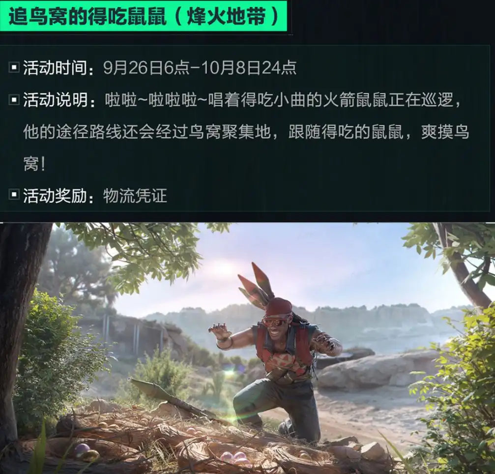 三角洲行动最近更新的“神奇鸟窝”活动,可以说是轻松又解压的福利玩法。相比枪林弹雨的对抗,这次的活动更像是一场寻宝之旅。在地图中会出现一个非常特别的NPC“自带音响的吃鼠鼠”。别担心,它和普通敌对生物不同,不会对玩家造成任何威胁。它会一边蹦蹦跳跳,一边把你带到今天的鸟窝聚集地。到达目的地后,这只鼠鼠还会给你来一段“庆祝舞”,就像给玩家的小惊喜。鸟窝聚集点一旦刷新,会出现 10个鸟窝,而且每天的位置都会更新,所以每天上线都能收获新鲜感。