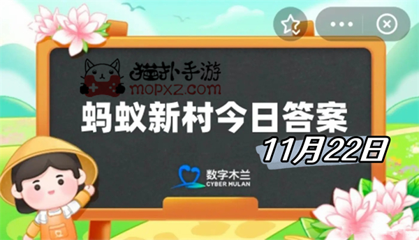 蚂蚁新村11月22日答案2024:11月22日蚂蚁新村又上线了新的题目,回答正确即可让木兰币的产速提升至+3/小时。那么,今天的答案究竟是什么呢?接下来我们一起来看看11月22日蚂蚁新村的正确答案吧!