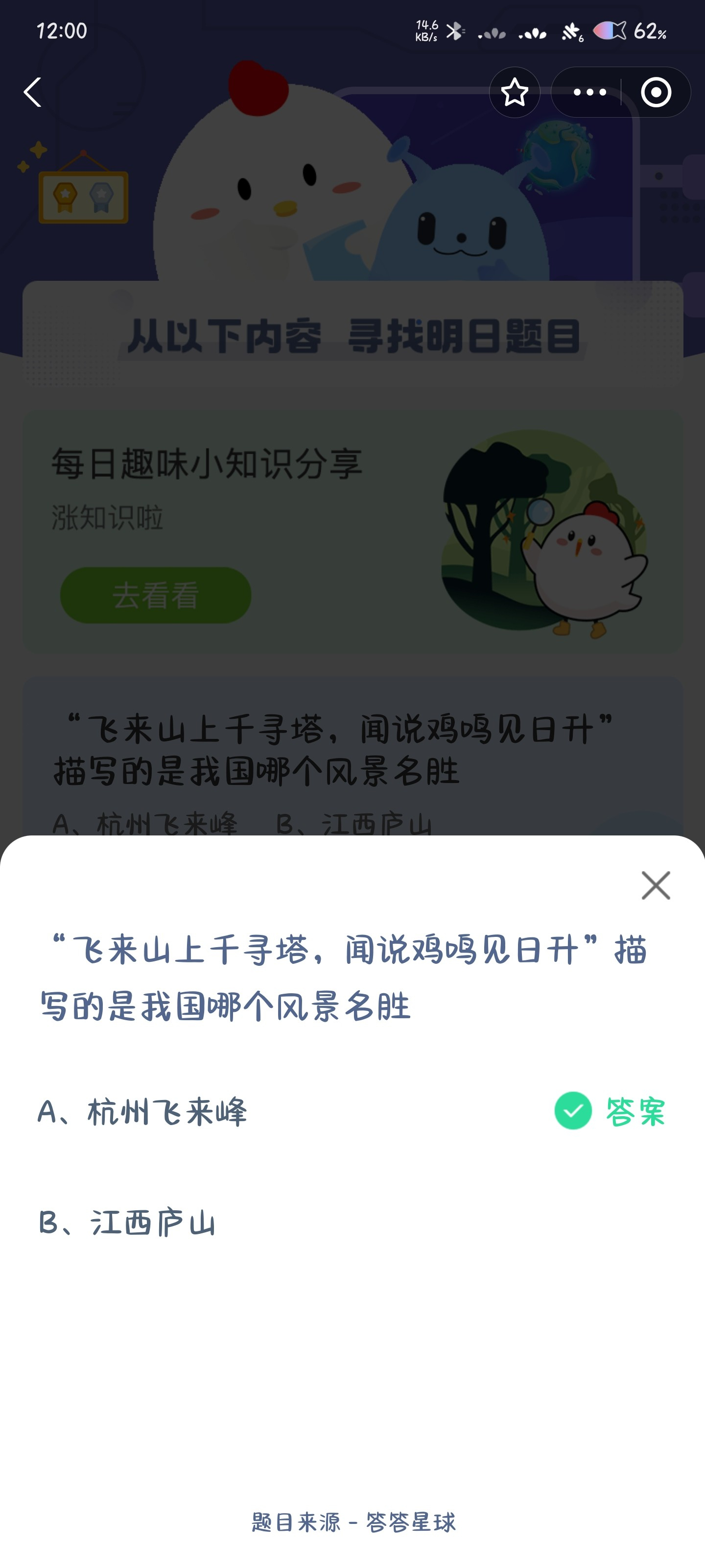 “飞来山上千寻塔,闻说鸡鸣见日升”描写的是我国哪个风景名胜?