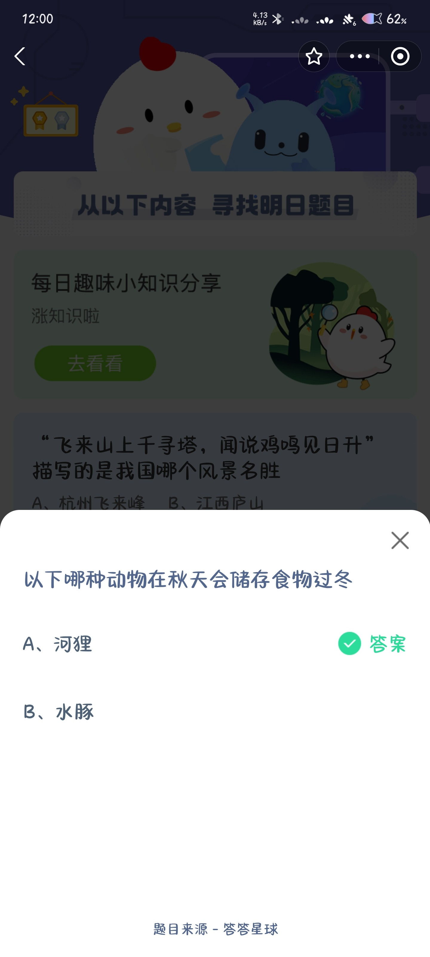 3、选择正确答案,答对后获得180g饲料,答错则仅获得30g饲料。