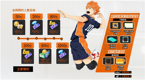 光是官网的预约奖励,玩家就能拿到25抽高级招募券、800钻石、日向翔阳头像框、及川彻头像款、公测定制全套家具,以及一些实用的培养材料。