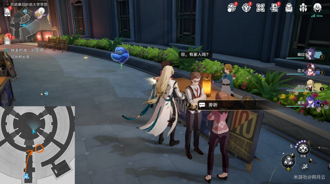 在地图的三个位置完成梦境迷钟解谜:分别位于西侧的创意集会、校长办公室门口和东侧走廊。完成解谜后,前往中央草坪区域,找到“梦境迷钟全体”,触发对话后即可获得成就“周日夜现场”,并解锁梦境迷钟头像。