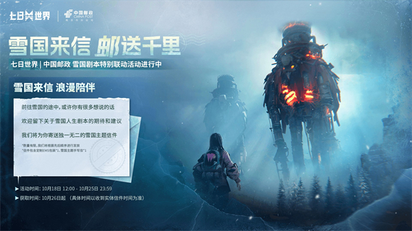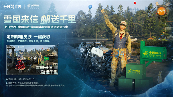 七日世界中国邮政联动皮肤获取方法:七日世界与中国邮政的联动活动已经于10月18日正式上线!玩家不仅能在活动期间免费领取联动限定皮肤,还能通过参与丰富的活动获得各种实体和游戏内奖励。接下来小编就为大家整理一份详细的联动皮肤获取方法,感兴趣的小伙伴快来看看吧!