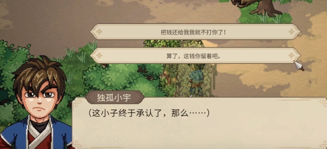 若在两个时辰内找到洪小七,可以要回被偷的钱,战败后礼节-5,战胜后选择: